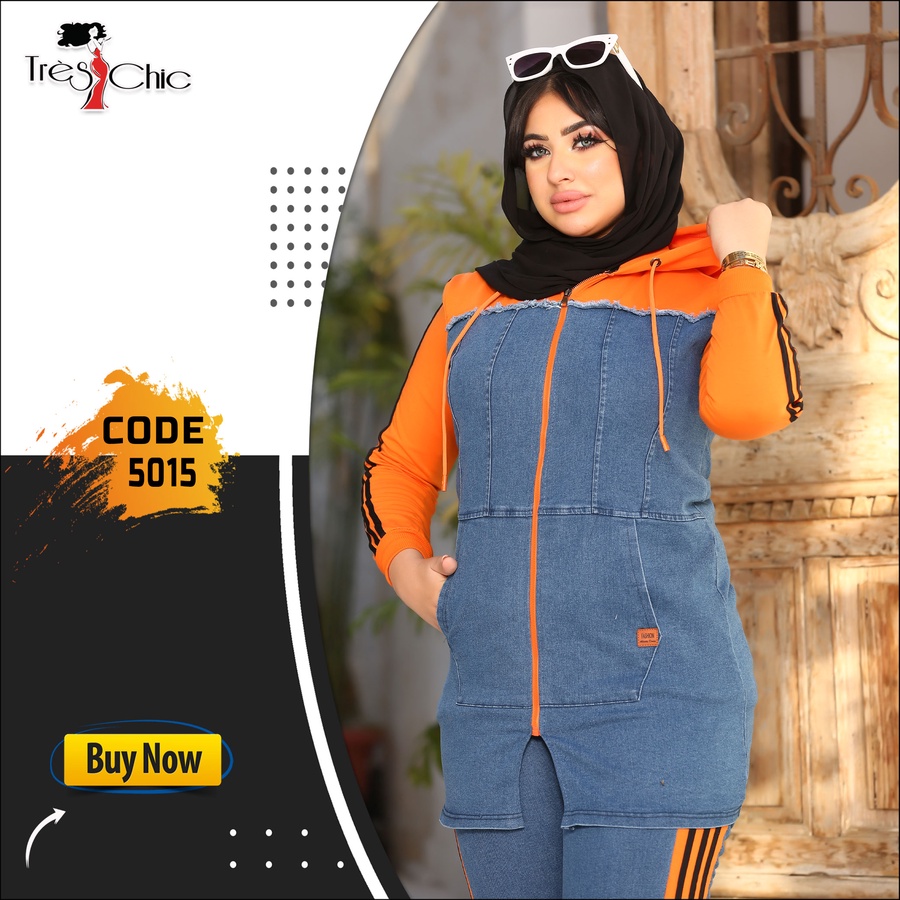 قطعتين متكاملتين، الشيرت بطول 85 سم مع كابتشيو شيك وعصري.